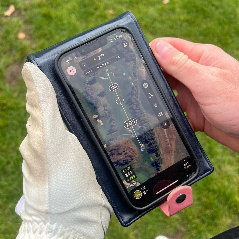 But I hit a major snag: there was no good way to keep my phone accessible on the course. Keeping it in my pocket was uncomfortable, and pulling it out 3–6 times per hole to check distances or record scores quickly became a hassle. In 2022, I tried using a rangefinder for quicker access, but it had its own limitations—no help on doglegs, blind tee shots, or precise front and back distances. I still needed my phone.